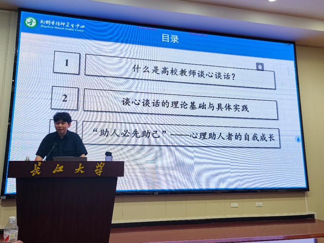 为进一步帮助辅导员、研究生导师、班主任掌握谈心谈话专业技巧,不断推进心理育人工作实效,7月8日上午,荆州市精神卫生中心心理治疗师袁贤明受邀来访公司开展谈心谈话技能专题培训。公司辅导员、研究生导师、班主任在农科大楼3073线上方式参加培训。