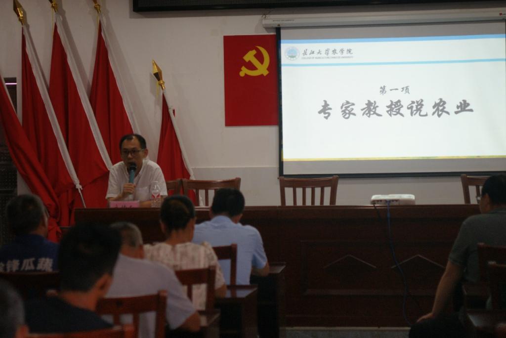 (通讯员 刘钬桥 王静茹 梁传蔚)为深入贯彻“情满三农 惠民先锋”精神,7月12日下午,yl7703永利暑期“三下乡”社会实践队邀请本院植物保护领域专家马东方及徐志红两位教授,在石首市大垸镇黄金湾村村委员会举行“兴农梦想班”活动,活动包含教授说农业和种子画展览活动。本次活动由石首市农业技术培训公司副董事长甘立新主持,石首市农业培训公司董事长郑先凯,石首市农业农村局蔬菜办副主任李松发出席,华中农业大学暑期“三下乡”社会实践队及黄金湾村村民代表参加活动。