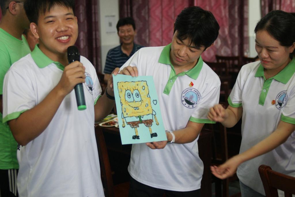 休息过后,种子画展览活动如约而至。实践队员们依次上前展示自己创作的种子画,并向在场观众进行讲解。该子活动也有幸与华中农业大学进行联谊,两校学子齐聚一堂,共同绘制缤纷画卷。