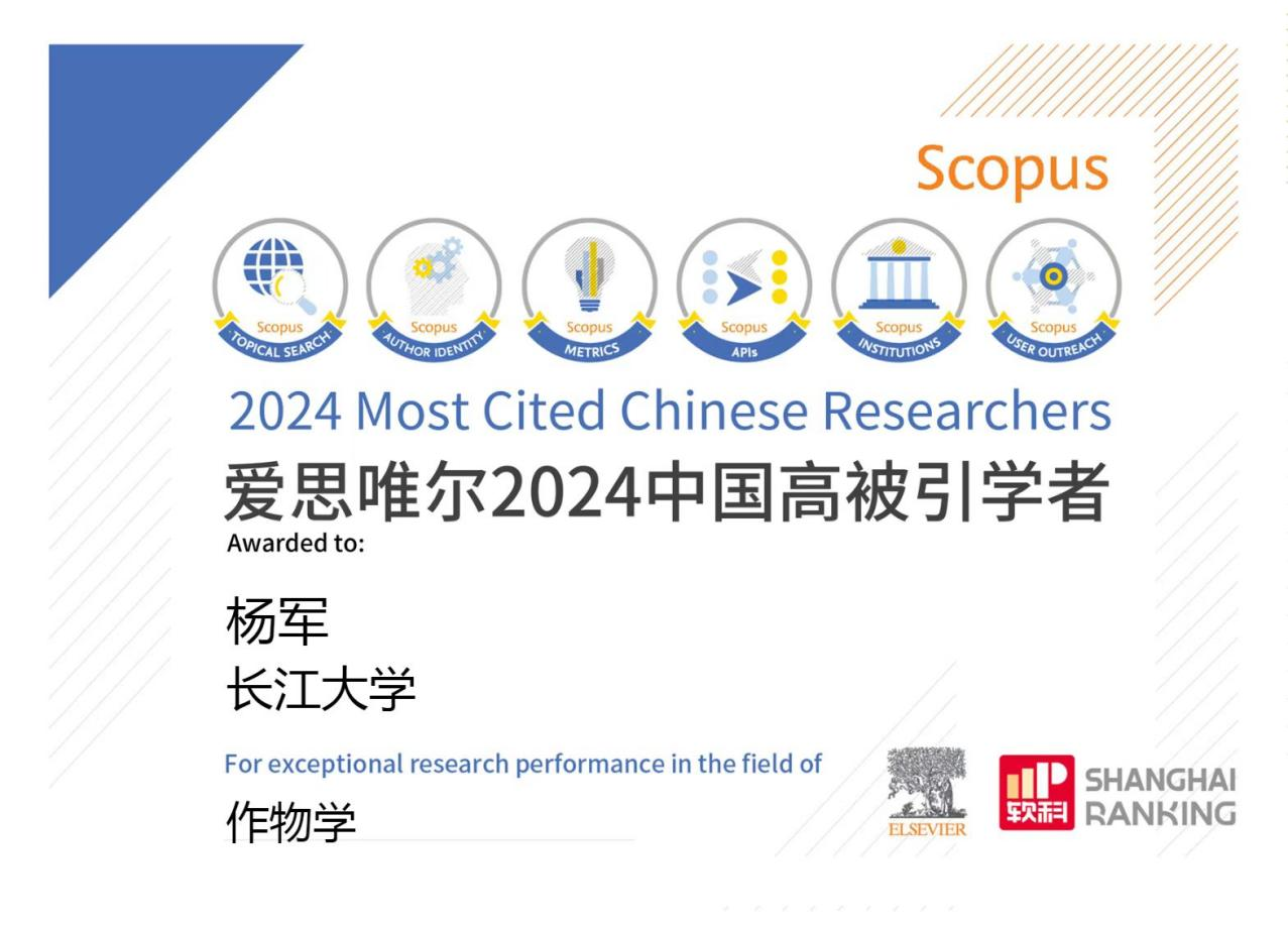 (通讯员 王雪)3月25日,全球权威学术出版机构爱思唯尔(Elsevier)发布2024年度“中国高被引学者”(Highly Cited Chinese Researchers)榜单,yl7703永利杨军副教授入选。