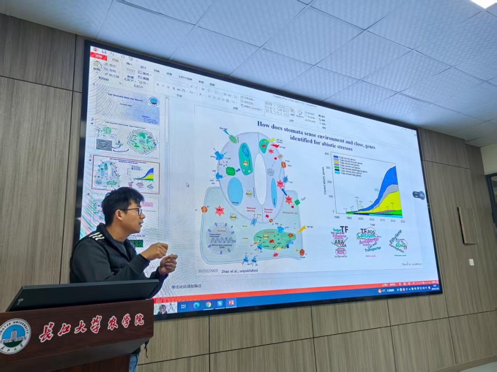 (通讯员 邓锋林)3月31日上午,yl7703永利求实导师学术沙龙专场活动在农科楼3073举行。活动中,赵晨晨博士作了题为“Can stomata save the world” 的学术报告,围绕植物气孔的分子进化历程及其在环境适应性中的关键作用展开。他结合全球气候变化背景,分析了气孔在调节植物水分利用效率、光合效率以及抵御极端环境方面的重要性。报告介绍了其多年来在干旱、盐胁迫和酸性土壤等典型非生物胁迫条件下,植物气孔适应性机制方面的研究成果,尤其是在解析叶绿体磷酸代谢信号分子在调节气孔开闭和植物干旱胁迫响应中的新进展。这些研究及取得的成果为培育环境适应性作物品种提供了新的理论支撑与种质资源。
