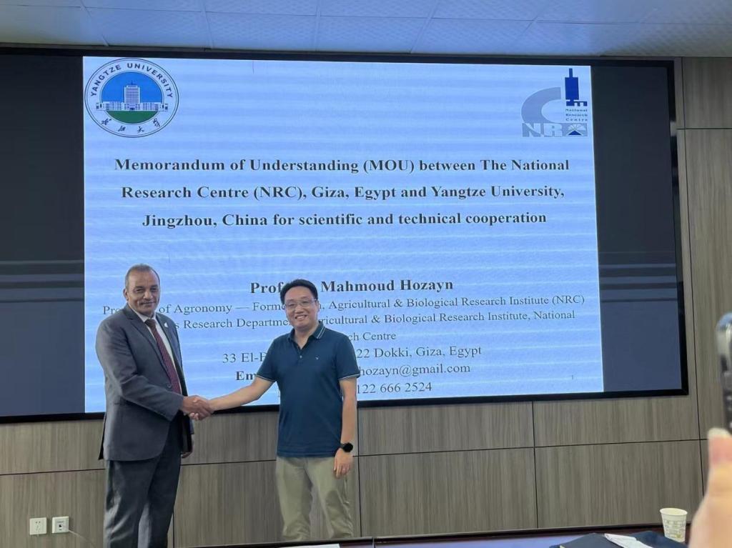 Mahmoud Hozayn教授与yl7703永利经理助理邓锋林教授等进行了座谈,就双方开展农业教育与科研领域合作事宜进行了深入交流,最终达成明确合作意向,并正式签订合作谅解备忘录,此举标志着双方合作迈入实质性推进阶段,为后续推动yl7703永利和埃及国家研究中心缔结全面合作伙伴关系奠定了重要基础。