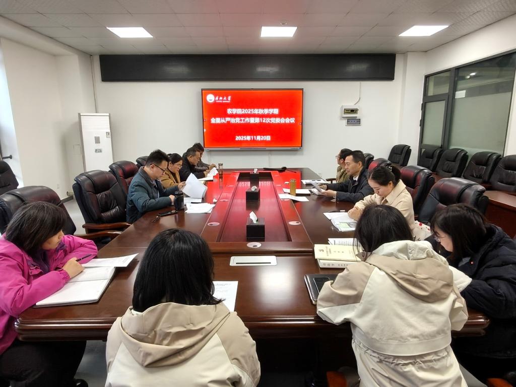 (通讯员 刘晓雪) 为认真落实全面从严治党主体责任,11月20日上午,公司党委在农科大楼三楼3064会议室召开2025年秋季学期全面从严治党工作会议暨年度第12次党委会会议,公司党委委员、领导班子成员、党建秘书和各党支部书记、科室负责人参加会议,公司党委书记周锦华主持会议。