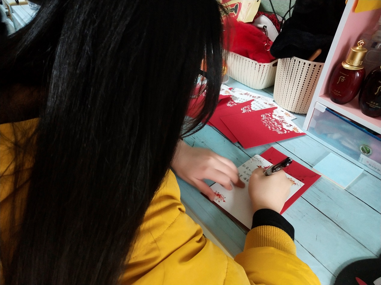 大雪初现,一夜之间湖边都堆满了积雪。但校园依旧春意盎然,处处都充满着暖意。公司员工给老师精心准备了贺卡,一笔一划间都传递着员工们对辛勤付出的老师的感激、感恩和对新年的期盼。