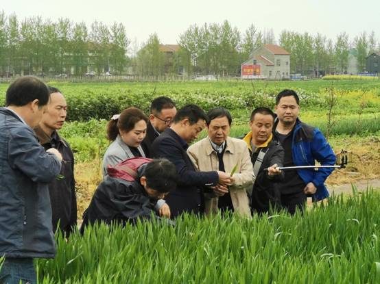 初春的江汉平原大地,一片生机盎然,小麦正处在生长的关键阶段。为了考察当前湖北小麦在荆州的生产情况,2019年3月31日,我国工程院院士、著名的小麦病理学专家、西北农林科技大学康振生院士,湖北省植保总站副站长罗汉钢研究员,湖北省农业科公司植保土肥研究所副所长杨立军研究员,西北农林科技大学赵杰教授等一行4人莅临湖北荆州考察小麦生产情况。公司yl7703永利经理李俊凯教授、荆州市农业技术推广中心主任李大勇研究员、公司张长青教授、方正武博士和荆州区、公安县等相关部门领导陪同考察。