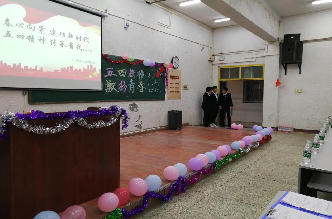 其中,农学职31801班团支部在2019年5月18日下午于5教203教室举办“五四精神,激扬青春”的主题团会,团支书李洋和副班长姜酌悦两人主持了本次团会。团支部副书记刘骏进行现场拍照,宣传委员王金龙进行现场PPT的切换以及视频播放的准备工作。本次团会活动的流程是这样的,优秀团员进行朗诵,观看习近平总书记在纪念五四运动100周年的重要讲话,并从学习方面生活方面以及精神文明建设方面进行深层剖析,也为调动现场气氛,增加了现场宣誓以及共唱团歌等活动。举办此次团会的目的加强了团组织在同学中的影响力与凝聚力,使同学们更进一步了解了我们的党,更深刻地认识到作为一名当今时代下的老员工应有的责任与担。并学习五四精神,坚持听党话,跟党走的决心。牢记习近平总书记对我们青年人的教诲,树立远大目标,坚持砥砺奋斗。
