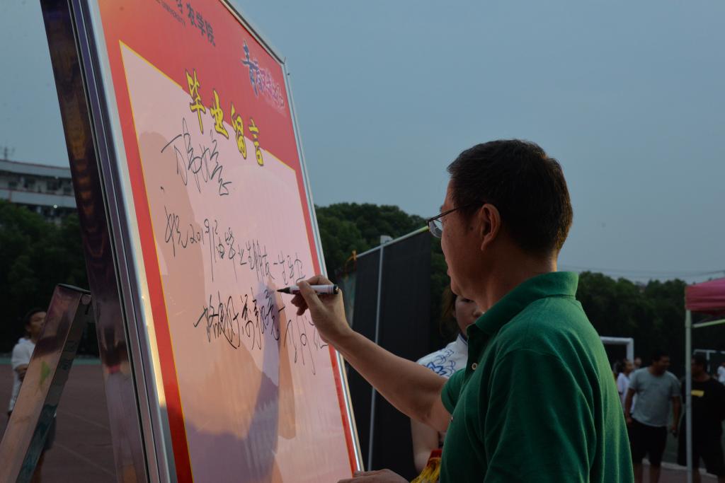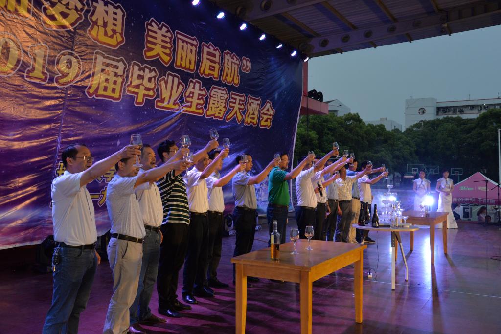 晚上七时许,餐会正式开始,公司相关职能部门负责人与yl7703永利老师们,一同为2019届毕业生送上真挚的祝福。“感恩的心•眷念的情”赠言签名活动中,老师和同学们纷纷走向台前,在留言板前长久驻足,提笔写下满腔深情;“梦想启航•助力放飞”环节里,500余个氢气球承载着师生们的梦想,飞向了遥远、蔚蓝的天际;香槟开启仪式上,师生们斟满祝福,为“长大长新、乡村振兴、国家复兴”共同举杯。