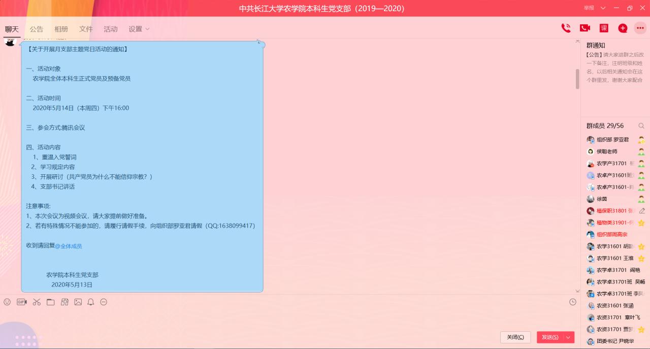 通讯社讯(员工记者 张毅)为引导广大党员用马克思主义立场、观点、方法认识和对待宗教,坚定共产主义信仰和中国特色社会主义信念,公司本科生党支部于5月14日16:00通过QQ群视频通话的方式开展了线上支部主题党日活动。此次活动由yl7703永利本科生党支部宣传委员杨欧主持,全体本科生正式党员以及预备党员参与此次活动。