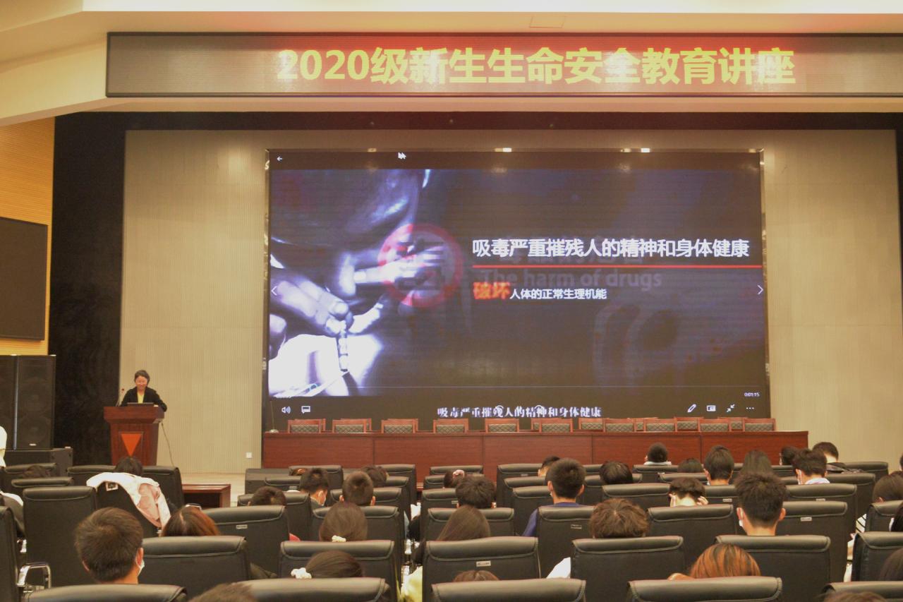 通讯社讯(见习记者 张璐萍/文 张红霞/摄 )为使新生拥有较好的校园生活环境,增强安全防范的意识,提高自我保护和避险能力,普及防毒防艾防恐知识。10月29日下午3:00,2020级新生生命安全教育讲座于农科大楼1058报告厅召开。公司全体2020级新生及辅导员参加此次讲座。