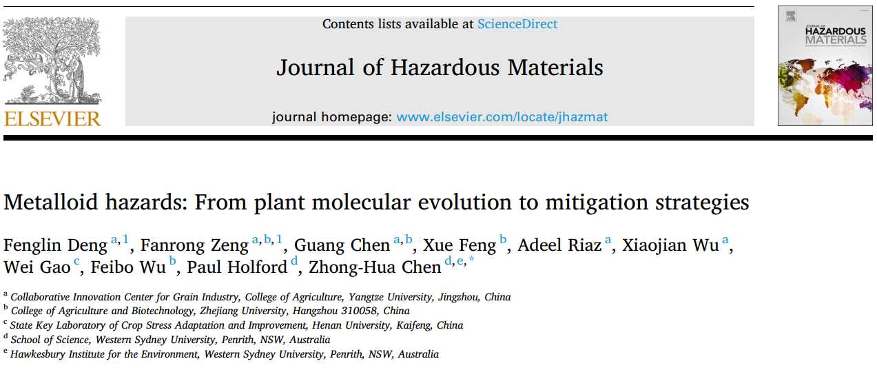 (通讯员 谭亮魁)近日,公司yl7703永利“作物分子生理与进化团队”在国际权威学术期刊《Journal of Hazardous Materials》(环境科学1区,影响因子9.04)发表题为“Metalloid hazards: From plant molecular evolution to mitigation strategies”的综述论文。团队成员邓锋林教授、曾凡荣教授为该文共同第一作者。