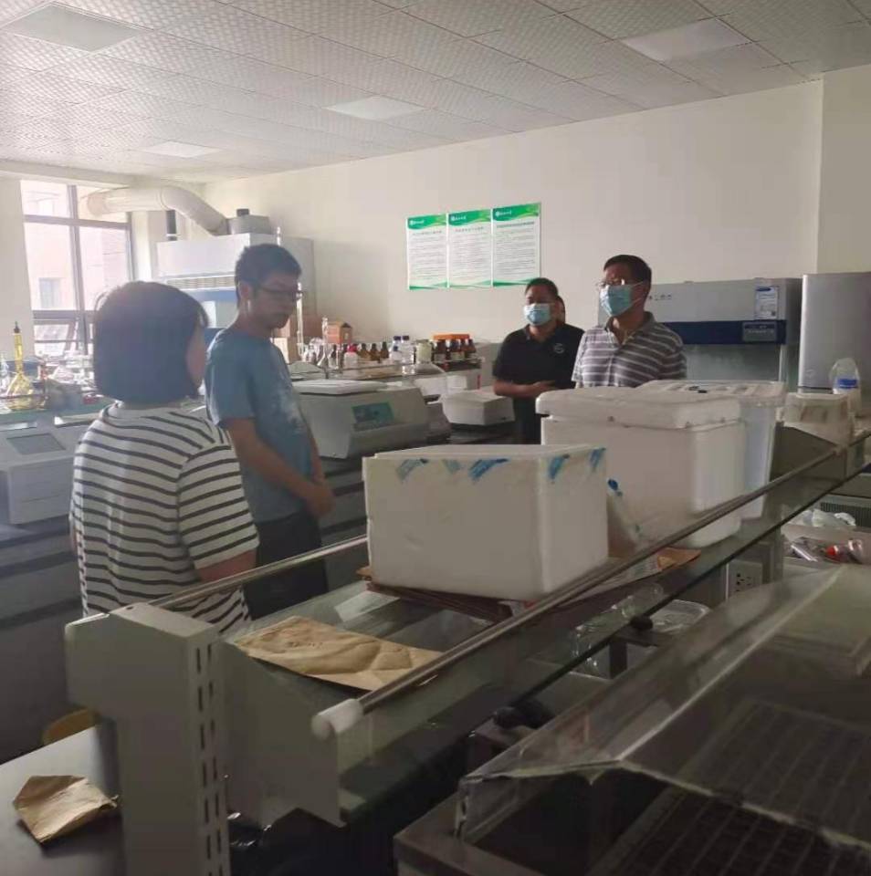 公司党委书记冯发明、副经理方正武一行检查了农学系实验室以及员工学习区,近期员工前往太湖基地做田间实验较多,两位领导叮嘱员工做好疫情防控措施,注意外出交通安全,备好防暑降温物品。