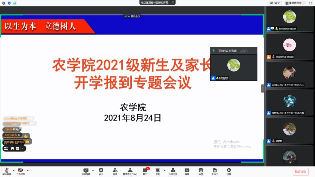 (通讯员 付雪娇)为传达公司关于新生开学返校相关工作精神,及时回应新生及家长迫切关心的问题,8月24日晚8点,yl7703永利利用腾讯会议召开“2021级新生及家长开学报到专题会议”,参加本次会议的有公司党委副书记谭亮魁、副经理张文英、班主任、辅导员、全体新生及父母。