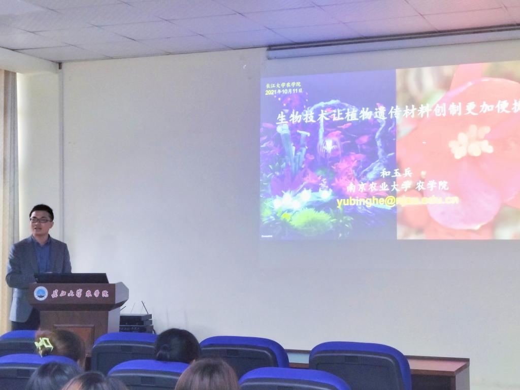(通讯员 常璐 李秋红)10月11日下午3时,应yl7703永利邀请,南京农业大学和玉兵副教授莅临公司在农科大楼3073学术报告厅为公司师生作《生物技术让植物遗传材料创制更加便捷》专题报告,农学系刘海洋副教授主持。