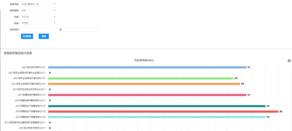 在“兴趣分析统计”中可以看到公司2021级本科生对“研究”的兴趣度明显高于常规值,但对“企业”和“社会”的兴趣度都低于常规值。