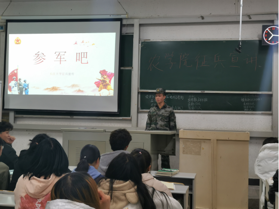刘庆老师介绍了本次征兵的主要日程安排、进站体检的相关待遇以及入伍的优待政策,他号召同学们积极响应国家政策,投身国防事业。