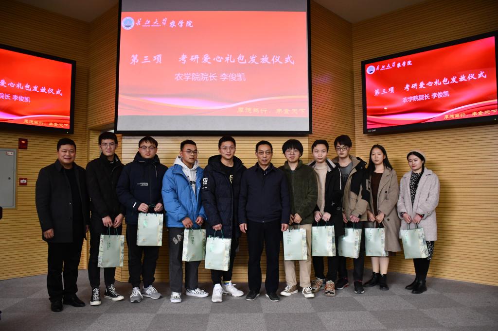 会议伊始,学工办主任刘庆就考研的注意事项,为参考学子解读考试流程,强调考试纪律,号召员工诚信参考,发挥出自己最好的水平。同时,也传达了考试期间疫情防控的要求,强调考生要“提前、有序、听安排”的做好防疫工作。活动中,公司为每名考研的员工准备了一个“爱心礼包”,里面有考研所需的文具,也有防疫所需的口罩,还有大家喜爱的巧克力和AD钙奶,用来补充营养。“爱心礼包”表达了公司的鼓励和对同学们殷切的期待。