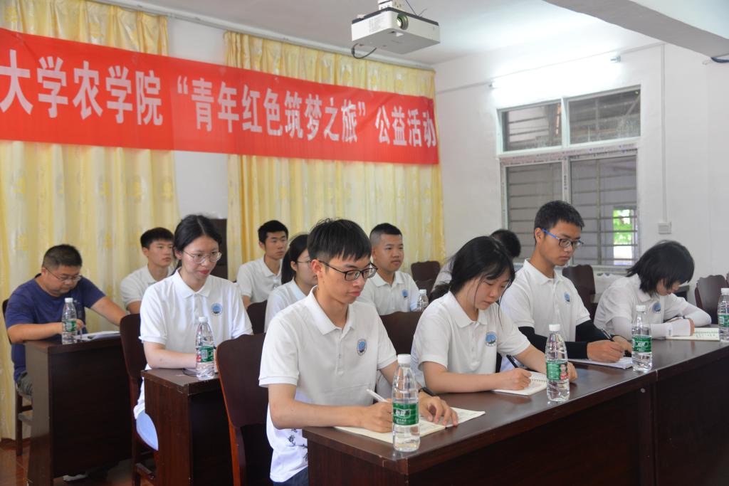 最后,驻村工作队队长王雨为三下乡暨青年红色筑梦之旅团队授旗。