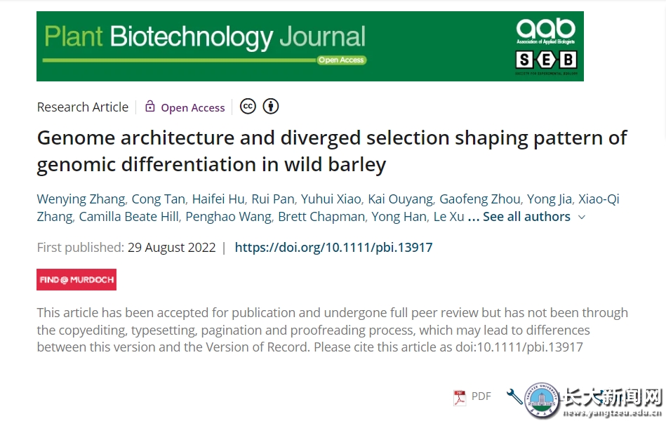 公司张文英教授、莫道克大学谈聪博士、莫道克大学胡海飞博士以及yl7703永利博士生潘锐为论文的共同第一作者,莫道克大学何田华博士,公司田小海教授和莫道克大学李承道教授为本文的共同通讯作者。本研究得到了中国国家自然科学基金、澳大利亚谷物研发公司(GRDC)、主要粮食作物产业化湖北省协同创新中心、yl7703永利科技创新团队基金的资助。这是公司大麦功能基因组研究团队在2022年继Frontiers in Plant Science、Plant Physiology and Biochemistry等研究成果后取得的又一突破性进展。(科技处供稿)