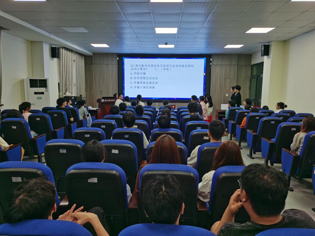 竞赛现场,各参赛队伍反应迅速、你追我赶,利用所掌握的电信诈骗知识和意识形态安全知识熟练答题。比赛现场精彩纷呈,参赛选手们的表现赢得了现场观众的阵阵掌声。