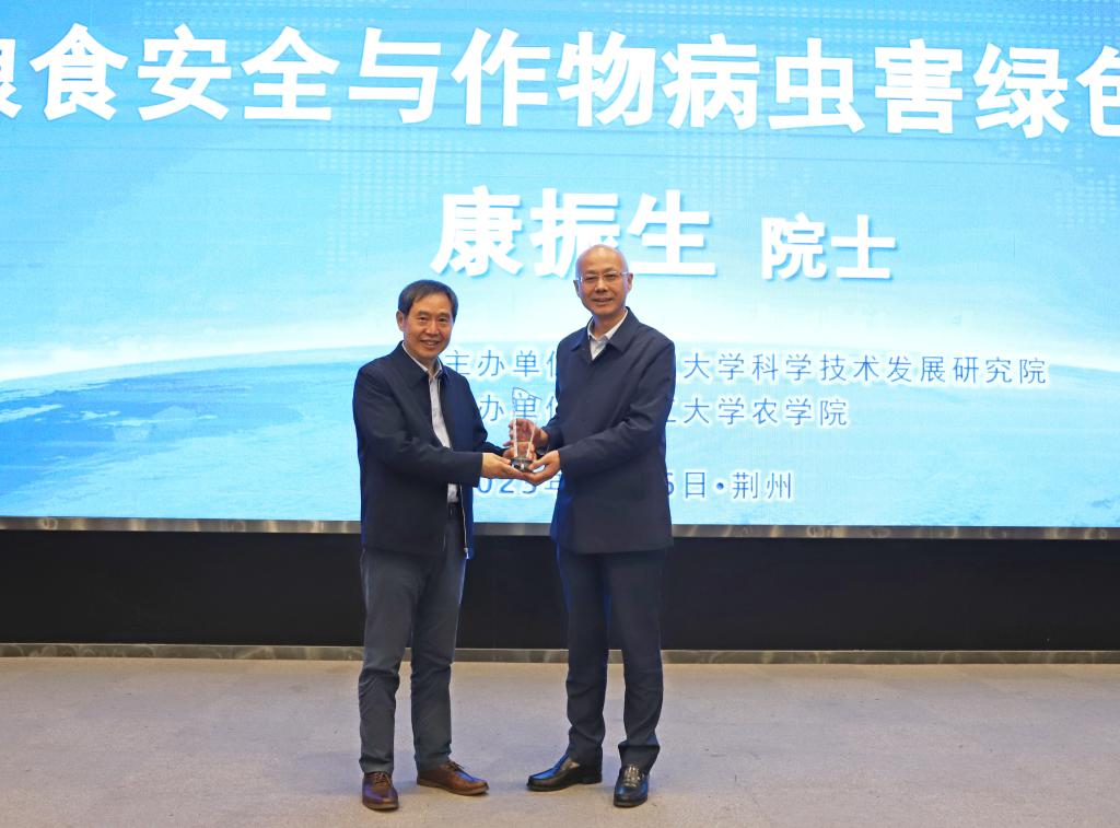 康振生院士分别从我国农作物病虫害绿色防控的进展、面临的问题以及发展对策三个方面进行了报告。他深入剖析了当前全球粮食安全面临的挑战,以及作物病虫防控领域的最新研究成果和技术。康院士通过丰富的实例和翔实的数据,生动地展示了病虫害防控在提高作物产量和保障安全生产中发挥的重要作用,并提出当前我国农作物病虫害绿色防控中还存在过度依赖农药的问题。