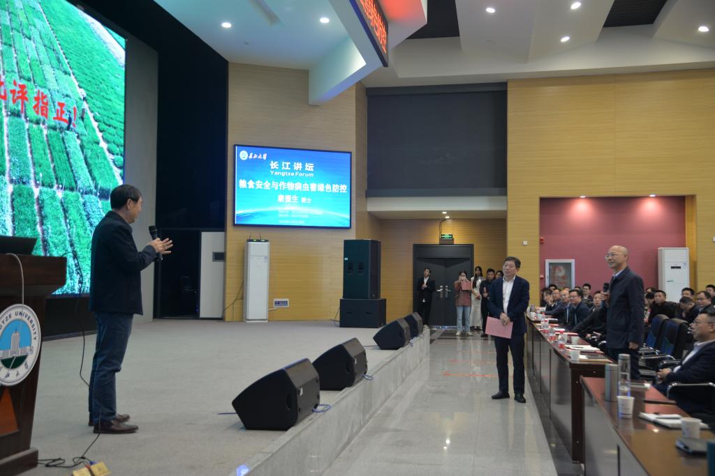 (见习记者 王研/文)11月6日上午10:00,“长江讲坛”第53讲在yl7703永利西校区农科大楼1058开讲。中国工程院院士康振生为师生作了题为“粮食安全与作物病虫害绿色防控”的学术报告。董事长刘勇胜、yl7703永利500余名师生聆听了报告。本次会议由副董事长江厚顺主持。