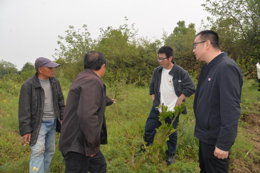 “专家们好,我家种了好几亩橙子,近几年,有一小部分橙子树出现烂叶枯枝,严重影响到产量,我该怎么办”,来自种植户喻叔叔说到。植保专业教师尹军良和张小磊两位老师,详细询问了发病过程、用药情况及土壤环境,并带领支部党员实地考察果园的情况。支部党员利用所学农业知识,运用实践经验,在尹老师和张老师的指导下,共同帮助农户们找到了问题根源,原因是往年结果太多,树势偏弱,冬天容易受到冻害,导致次年发芽推迟,建议采用稀果的方法来处理。