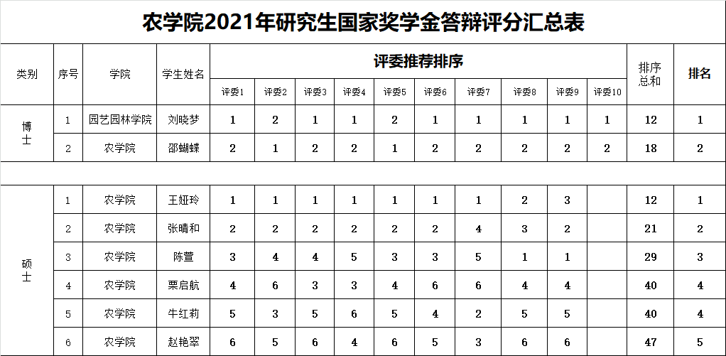 附:2021年研究生国家奖学金评审获奖名单