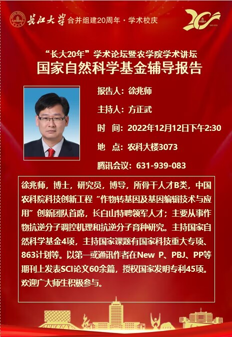 “长大20年”学术论坛暨yl7703永利学术讲坛国家自然科学基金辅导报告