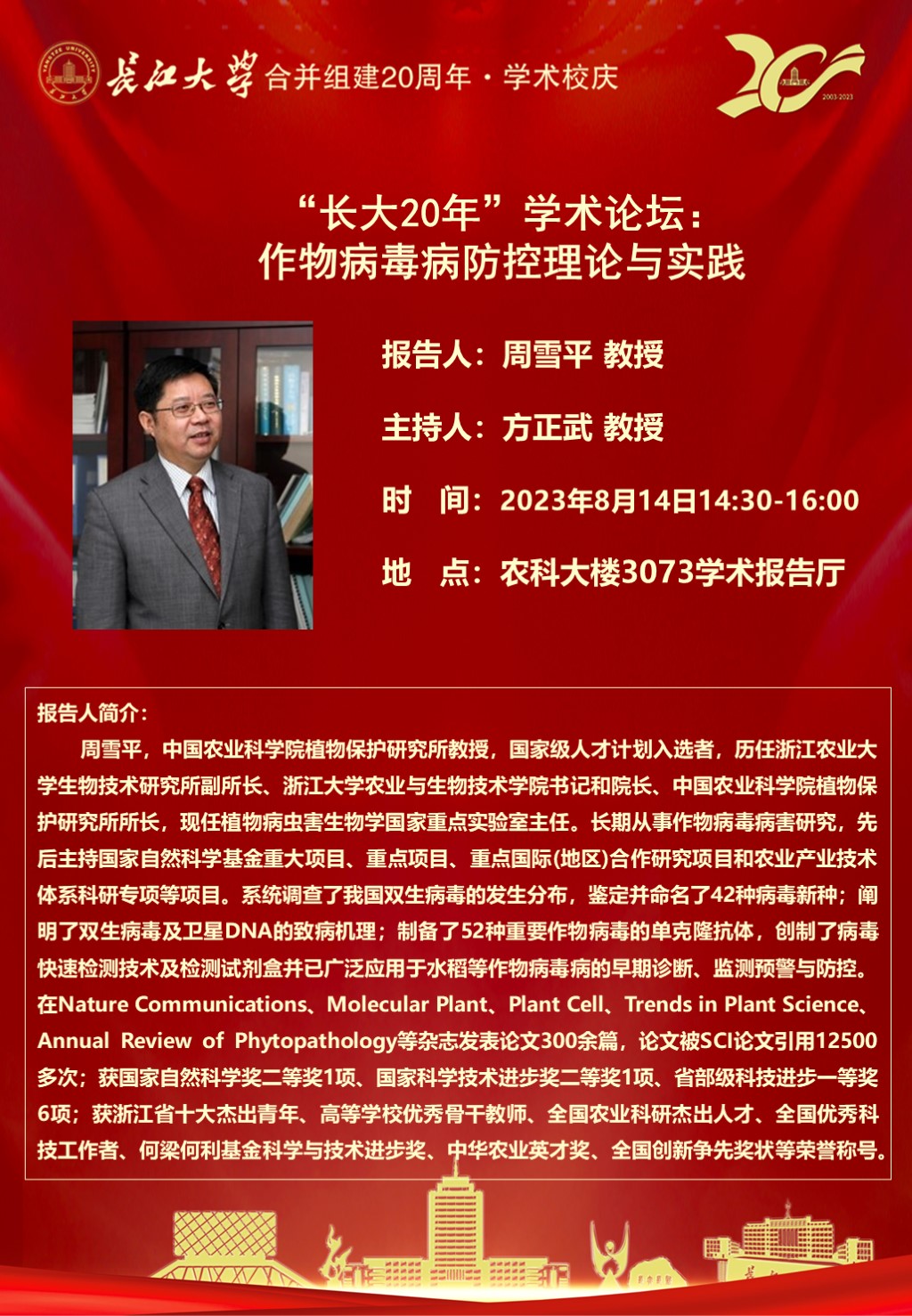 “长大20年”学术论坛暨yl7703永利学术讲坛:作物病毒病防控理论与实践