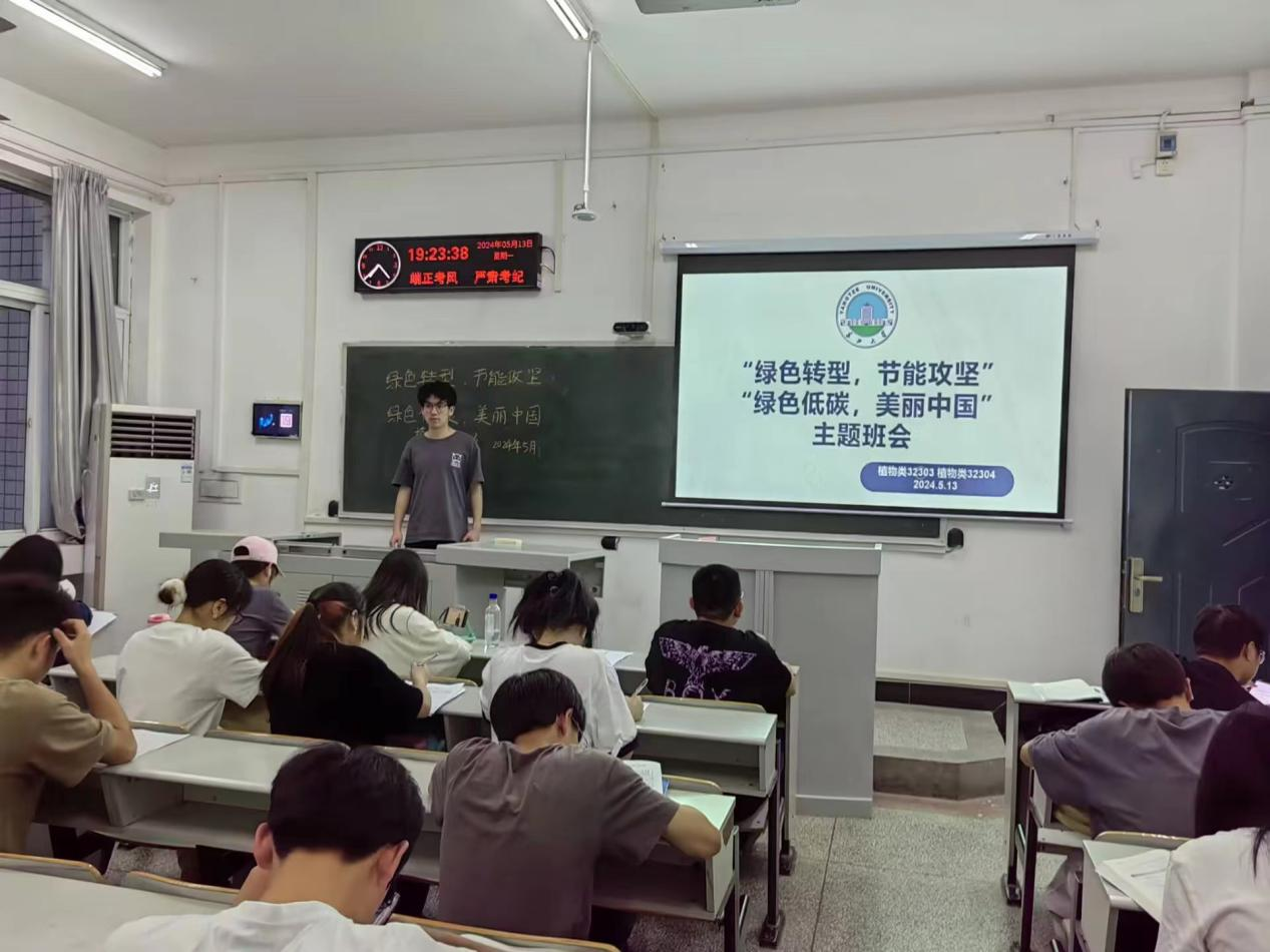 此次活动中公司全体本科生班级召开“绿色转型,节能攻坚”、“绿色低碳,美丽中国”主题班会并通过PPT讲授讲解、案例讨论以及分组交流等形式开展。班会上,班主任和辅导员老师精心准备,向大家介绍习近平总书记关于碳达峰碳中和工作的重要论述,耐心讲解我国“双碳”工作的全过程以及告知大家实现“双碳”对国家、社会和个人的要求。同学们认真学习,积极参与讨论,踊跃分享自己在日常生活和学习中为实现“双碳”做出的贡献,班会气氛活跃。