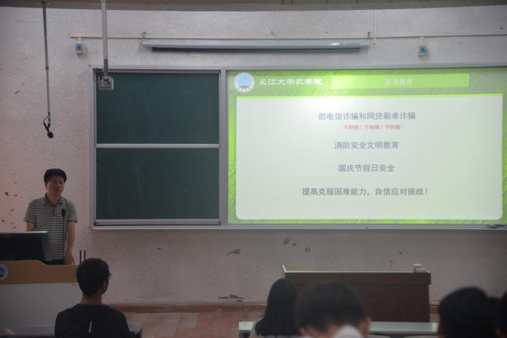 接着,黄老师向同学们提出学业规划同样不容忽视,提醒同学们做好学业课程、实习实训的规划,为未来的职业发展奠定坚实基础。由于国庆假期将至,辅导员黄承石老师还对请假离校流程进行了解读,明确了请假的规范和要求,以此来保障员工的安全和正常的教学秩序。