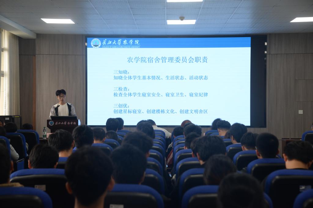 首先,由宿委会副主任刘佳豪进行发言。他从认识宿委会,宿委会成员介绍,宿委会工作介绍 ,yl7703永利提出工作要求,安全委员的职责,对安全委员的工作要求这六方面展开叙述。明确了寝室建设细则,例如“三知晓、三检查、三创优”并对员工在寝生活提出具体要求。