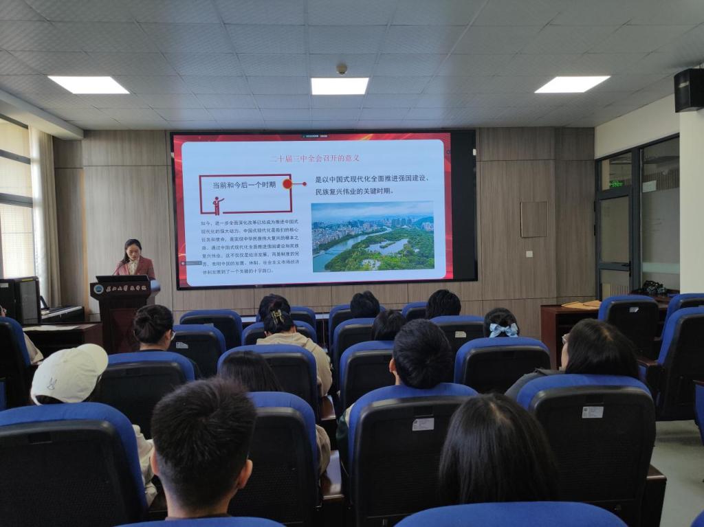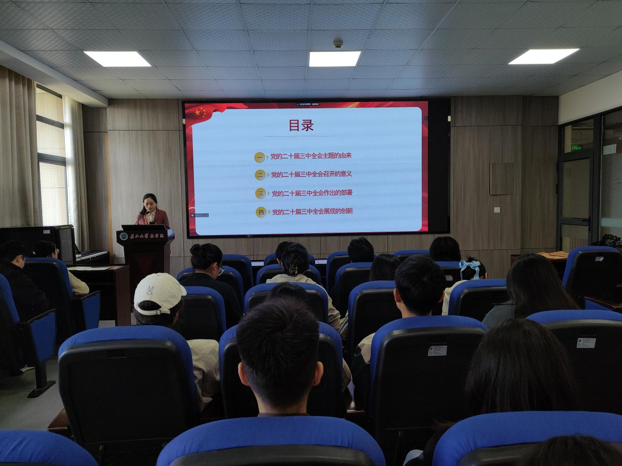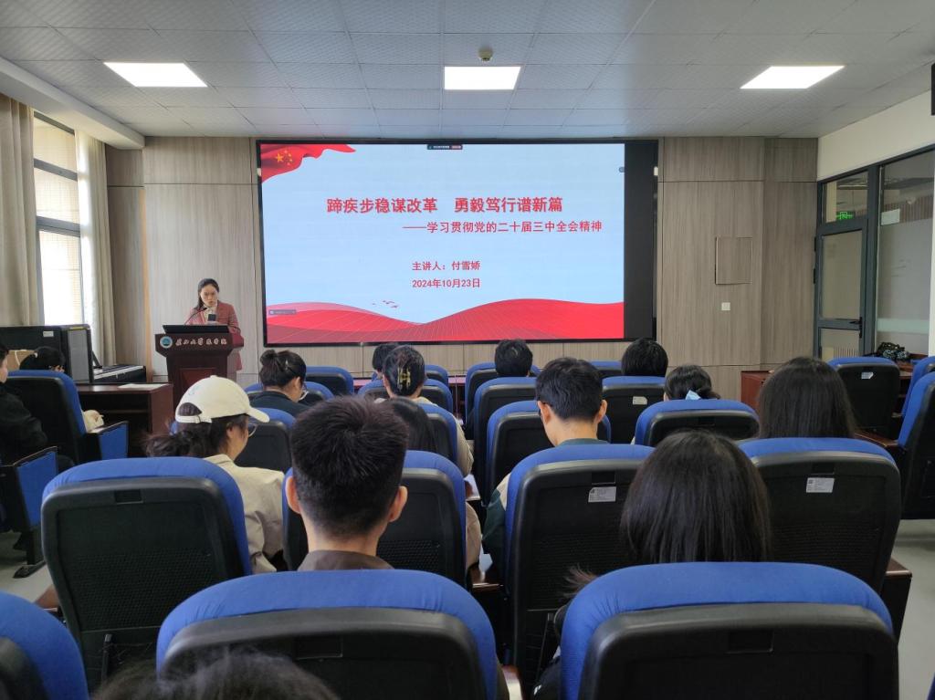 (通讯员 任娇 宋梦圆)为深入学习贯彻党的二十届三中全会精神,引导广大青年深刻领会全会精神,激发他们的责任感与使命感。10月23日,yl7703永利团委书记付雪娇在农科大楼3073会议室以“蹄疾步稳谋改革 勇毅笃行谱新篇”为题为80余名党员、积极分子上了一堂精彩的思政课。