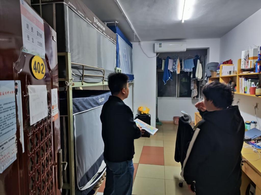 (通讯员张书豪)2024年11月21日,yl7703永利副书记尹小华老师,学工办主任黄承石老师以及辅导员林香亮老师于晚上八点一行,带着对同学们的深切关怀,走访了公司的员工寝室,深入了解同学们的学习与生活状况。旨在加强师生之间的沟通与联系,为同学们提供更加精准有效的帮助和支持。