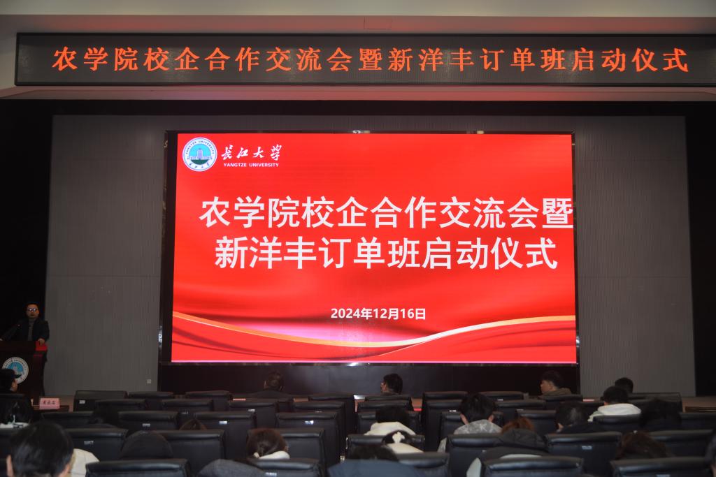 (通讯员 王研 徐馨悦/文 赵雨洁 郑怡乐/摄)为了让同学们更清晰地了解就业方向,提高职业技能,同时,加强公司与企业的联系,为同学们搭建直通职场的桥梁。12月16日18:50,yl7703永利与新洋丰农业科技股份有限公司共同举办的订单班启动仪式在农科大楼1058报告厅隆重举行。出席本次活动的嘉宾有:新洋丰人力资源中心主任龚世虎、市场推广部部长汤新泉、市场推广部首席农艺师邓超、人力资源中心培训公司常务副董事长周飞、人力资源中心招聘薪酬部副部长赵晶、人力资源中心培训公司专职讲师孟凡宇及公司党委副书记尹小华、经理助理邓锋林、学工办主任黄承石、辅导员林香亮。本次活动由尹小华书记主持。此次启动仪式标志着双方在人才培养、产学研合作等方面迈出了坚实的一步。