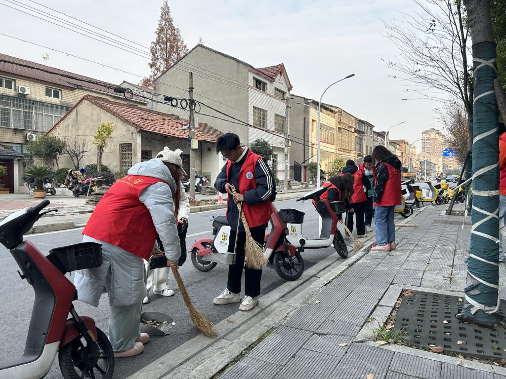 活动当日,志愿者们身着统一服装,手持扫帚、簸箕、抹布等清洁工具,兵分多路对公共区域展开全面清扫。他们认真清扫街道上的落叶、烟头、废纸等垃圾,仔细擦拭路边的垃圾桶、公交站台和宣传栏,不放过任何一个卫生死角。尽管寒风刺骨,但志愿者们热情不减,干劲十足,他们忙碌的身影构成了一道亮丽的风景线,赢得了过往居民的纷纷称赞。用实际行动向居民们传递着爱护环境的理念,为社区居民营造了整洁舒适的生活空间。