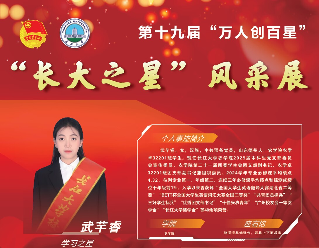 (通讯员 李宛静 付雪娇)万人竞逐展风采,百星闪耀绽光芒。在刚刚结束的公司第十九届“万人创百星”评选活动中,公司学子积极进取,砥砺前行,公司有4名同学荣获“学习之星”、“学干之星”、“创新之星”、“自强之星”等校园明星荣誉,其中1名同学荣评“十佳之星”,刷新yl7703永利最佳成绩。他们分别是:
