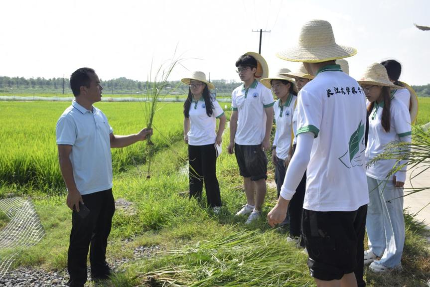 盛夏的阳光洒在绿油油的稻田上,泛起层层金色的涟漪。上午九时,在长安村党支部书记赵文龙和石首市农业技术培训公司副董事长甘立新的热情接待下,yl7703永利公司党委副书记尹小华、院团委书记付雪娇带领着12名“三下乡”社会实践队的队员来到了这片充满生机的希望田野。
