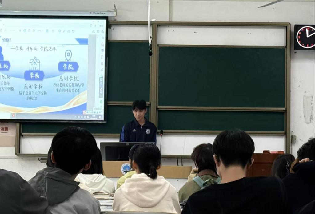 (通讯员 陈彦戎)2025年9月26日下午,公司组织召开了赴韩国首尔大学交换生经验分享会。公司2025年上半年赴该校交换的陈彦戎同学受邀进行了分享。全院对交换项目有兴趣的同学积极参与了会议。