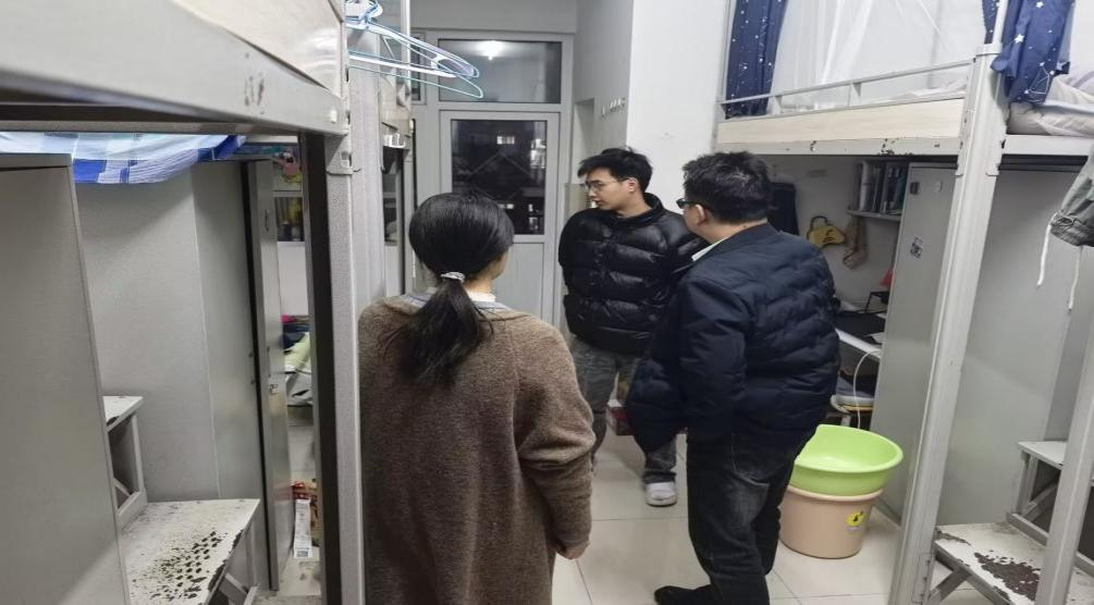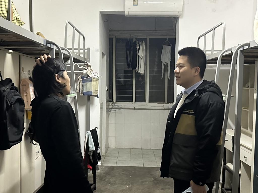 (通讯员 韩亦城)为深入了解员工在校期间的生活与学习状态,切实解决员工成长中的实际问题,引导员工明确学业目标与职业规划,2025年12月2日晚上六点三十分,党委副书记尹小华,学工办主任黄承石,分团委书记付雪娇,兼职辅导员高明銮深入员工宿舍,开展寝室走访活动,旨在全面了解员工生活学习情况,为员工们提供更贴心、细致的关怀和引导,打造更安全、舒适的寝室环境。