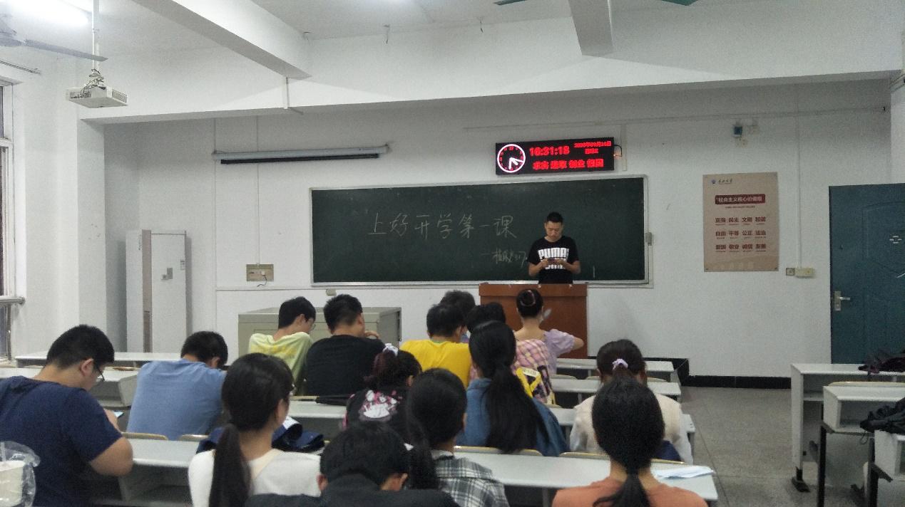 植保产31701在教室开展了本月团日活动,主持人讲到:“8月17日,中华全国青年联合会第十三届委员会全体会议、中华全国员工联合会第二十七次代表大会在京开幕。习近平总书记发来贺信向全国各族各界青年和青年员工、向广大海外中华青年致以诚挚的问候。”