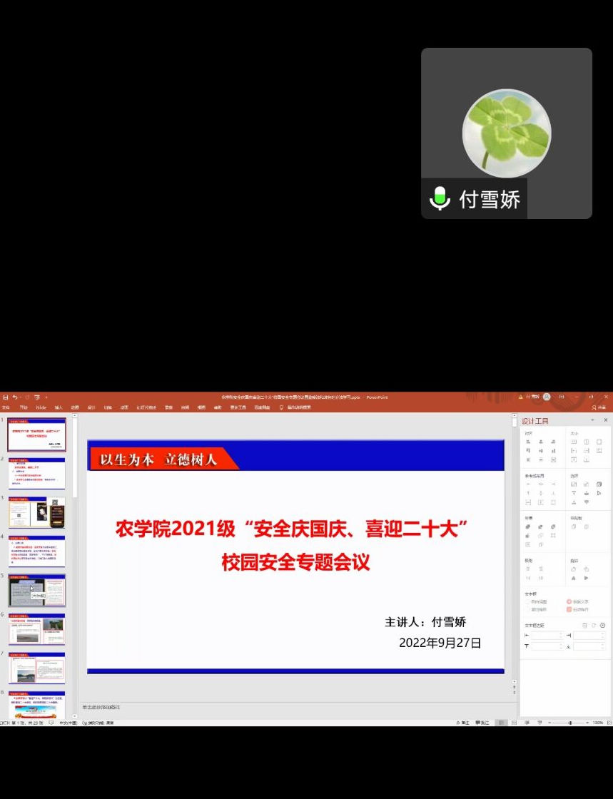 (通讯员 李雨珈)为提高员工的安全意识,增强员工对安全隐患的认知,加强员工的自我保护能力,砥砺奋进喜迎二十大,国庆临近之时,9月27日下午,公司分年级分班级召开“安全庆国庆、喜迎二十大”校园安全专题会议。