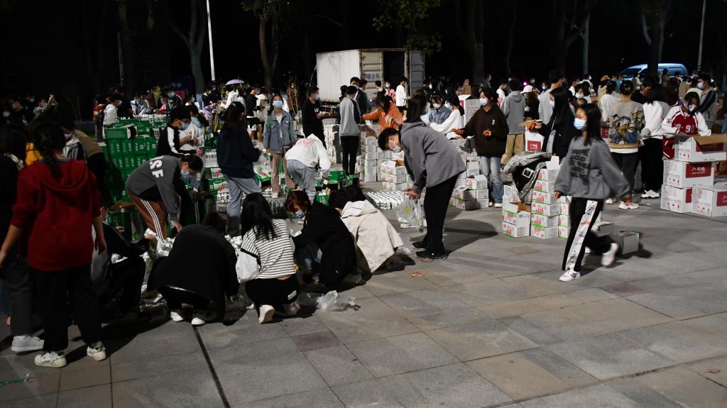 关于组织全员核酸检测方面,志愿者们往往天不亮便早起来到检测地点,将桌椅、帐篷、消毒物品等需用物品摆放整齐到位,组织同学们以楼层为单位下楼做核酸,尽量减少人员聚集;在做核酸时,志愿者们主动承担身份信息录入、身份核检、分发咽拭子棒等工作,有效减少医护人员的工作,使得核酸检测快速进行,同时提醒同学们排队间隔一米以上,防止交叉感染。关于分发物资方面,志愿者们更是不辞辛苦地为同学们服务,尽心尽力将防疫口罩和食品物资由班级分发到各个同学手上。