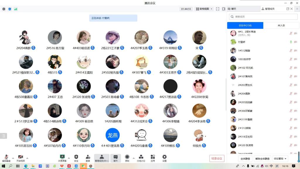 (通讯员 江雪)为迎接新学期的到来,进一步加强寝室卫生建设,营造干净舒适的寝室环境,2月6日下午4点,公司利用腾讯会议召开了2023年春季开学楼层长和寝室长会议。全体寝室长和宿委会成员参会,本次会议由宿委会主任付雪娇老师主讲。
