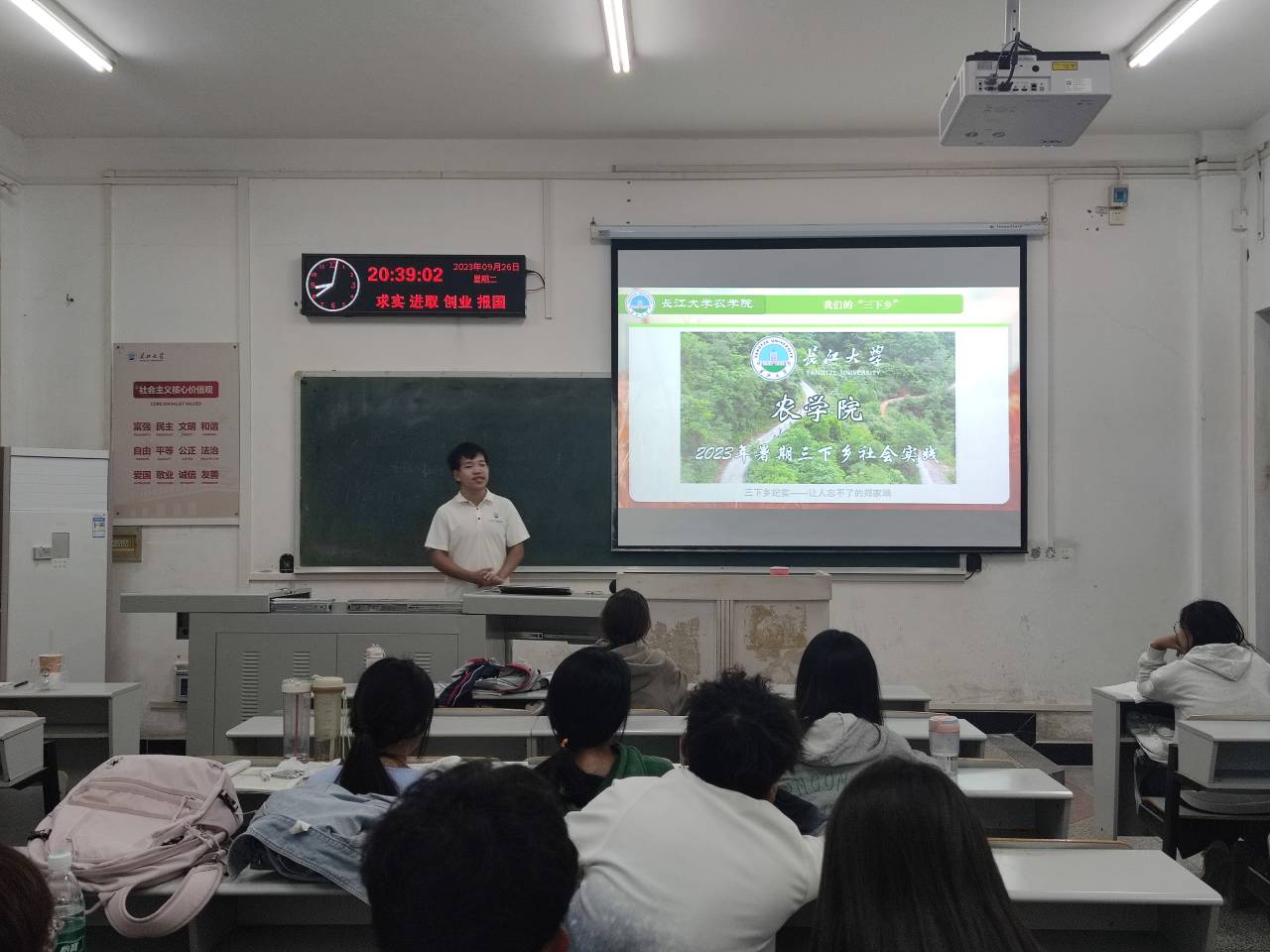 在今年的实践活动中,yl7703永利暑期社会实践服务队在党委副书记尹小华、分团委书记侯聪的带领下,在兴山县水月寺镇郑家埫村进行了为期七天的走访调研。实践队员们以自身为例向同学们描绘了精彩有趣的实践活动,强调了进行暑期社会实践活动的重要内涵与意义,并鼓励新同学们积极参与到这项活动中去,用心去感受“服务三农”精神,厚植学农、爱农情怀。
