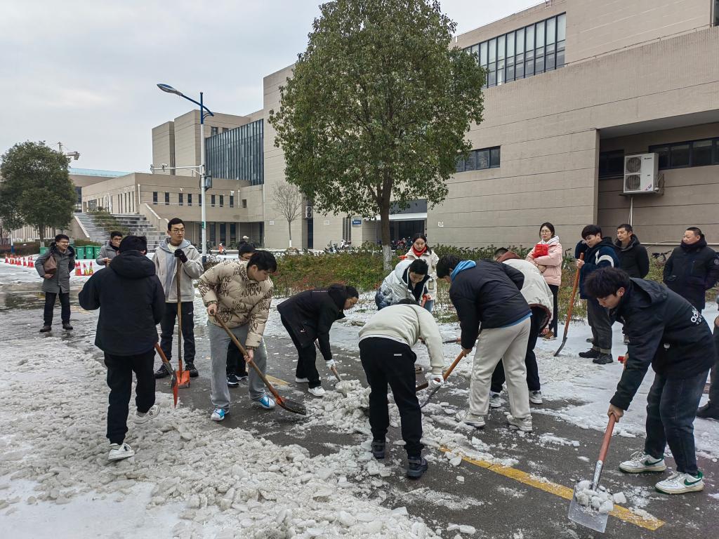 (见习记者 曹淏郁/文)近日,受寒潮影响,荆州市出现持续性冻雨降雪天气,路面结冰,道路湿滑,给即将复工复学的公司师生们带来许多不便。为保障开学后师生出行安全、方便,yl7703永利积极响应公司号召,于2月24日上午组建铲雪除冰小分队,由公司党委副书记尹小华任队长,全体辅导员及十余名员工干部参与。