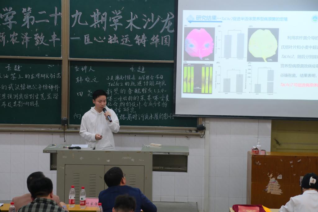 yl7703永利硕士研究生韩晓文通过对小麦捕光叶绿素 a/b 结合蛋白 TaLhc2 的抗逆功能研究表明了 TaLhc2可促进病原体的定殖。硕士研究生田尧通过研究,为解决农业病害严重影响作物的生长与发育提供价值参考。硕士研究生向前利用采水点确定与氮磷测定及对景观指数的提取方法,研究发现改善流域水质可以从增加森林斑块的面积,规范森林斑块形状,加强森林斑块隔离性入手等。园艺园林公司研究生依次针对研究内容和研究意义进行汇报。