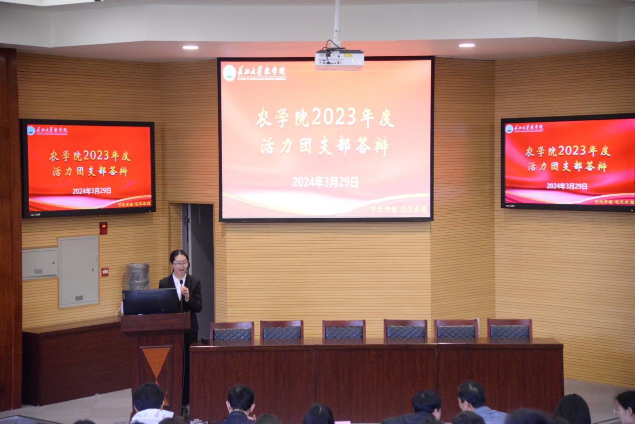 (通讯员 张政)为深入学习宣传贯彻党的二十大精神,评选先进、树立典型,激励广大青年不忘初心、牢记使命,在公司营造追求卓越、青春向上的环境和氛围,公司于3月29日12:30在农科大楼1056举行2023年度活力团支部答辩活动,出席本次答辩活动的评委有:yl7703永利团委书记付雪娇老师,农资系李继福老师,农学系潘锐老师,植保系杨玉婷老师,兼职辅导员李洪洲和孙振艳,员工代表农学职32101班曾袁琳珺。活动在植物类32302班徐乐艺的主持下顺利进行。