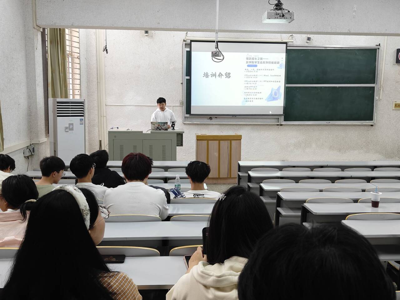 在培训内容方面,主席团陈琦睿同学为大家讲解Office办公软件的运用技巧及Word软件的基本功能及排版技巧,如文本格式设置、段落格式调整、页面设置等。同时,他还讲解了窗口布局的多种方式,帮助员工会成员更好地适应不同场景的需求。随后,他详细讲解了Excel的各种公式与应用,如求和、平均值、筛选、排序等,且通过实例演示了如何利用Excel进行数据整理和分析,提高员工会成员的数据处理能力。他还讲解了如何在演示过程中与观众互动,提高PPT的吸引力和说服力,同时也向同学们分享了日常工作PPT制作的实用技巧,如选题与构思、设计原则、动画效果等。