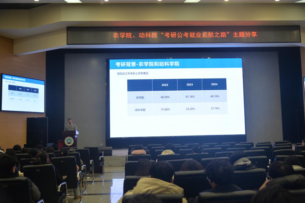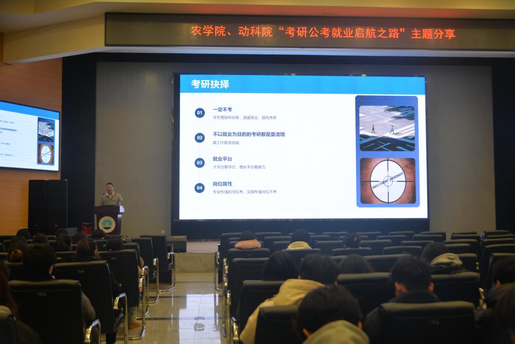 (通讯员 严树彬 向建华)2月20日19:00,yl7703永利在农科大楼1058成功举办了以“考研公考就业启航之路”为主题的学术讲座。此次讲座由yl7703永利优秀员工黄浩主讲,面向yl7703永利和动科院大三本科生。本次讲座聚焦考研、公考及就业三大关键领域,为有志于此的员工群体提供了专业全面的指导。讲座吸引了众多怀揣梦想的学子踊跃参与,现场气氛热烈,为员工们即将步入的考研和公务员考试之路注入了满满的正能量。